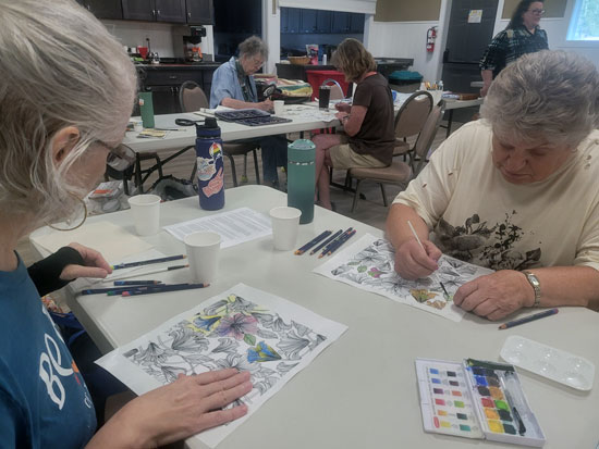 | Beautiful sunset one evening. | Scenes from a fun class in fabric painting at our local quilt guild. It was a great day. |