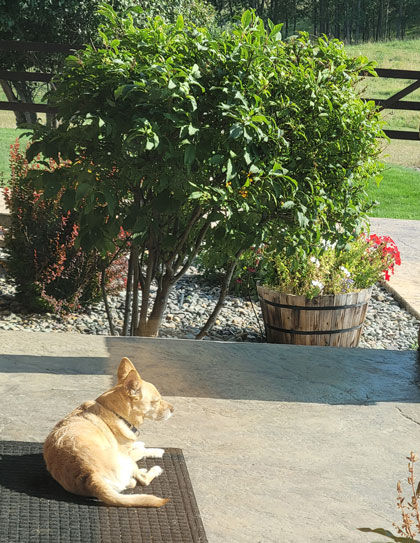| Buddy loves to roast himself in the full afternoon sun on the front porch. | |