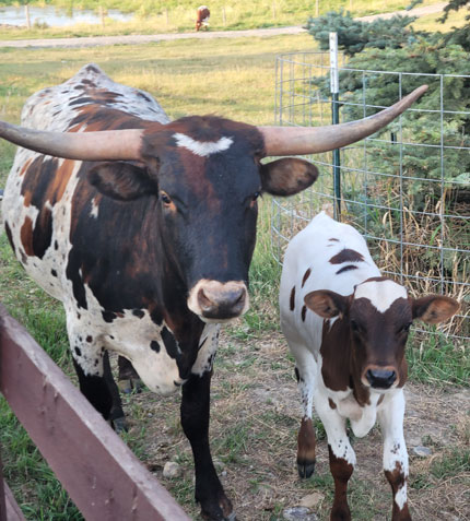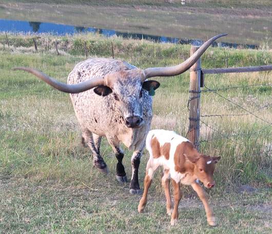 ![]() The newest longhorn baby. I call him Bikram because of the little dot on his forehead. His mamma is very protective. |