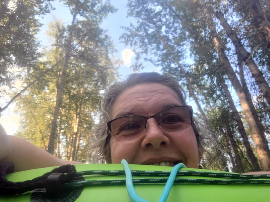 Selfie during one relaxing float trip. Buddy runs alongside, he didn't like the floating part. |
