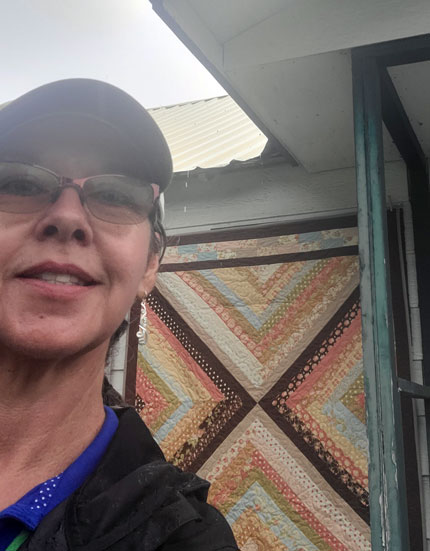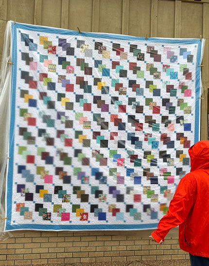 | Me with that quilt, after I rotated it to the correct orientation. | |