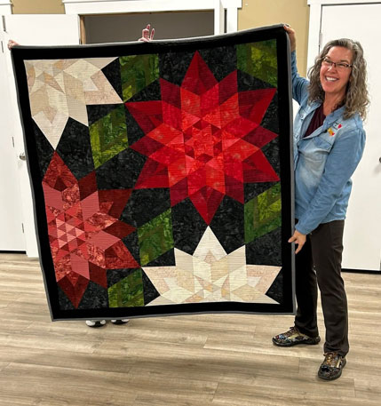 | Showing my Crimson Christmas quilt at a Scraps-n-Threads guild meeting | |