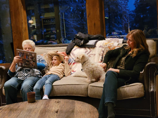 | I brought Rose her annual family calendar and everyone seemed to enjoy looking at it. | Madison, Aubrey, and Mark seem to be finding something funny in it. |