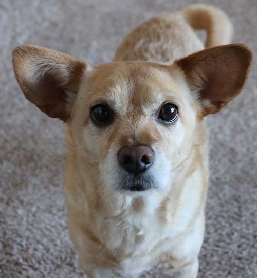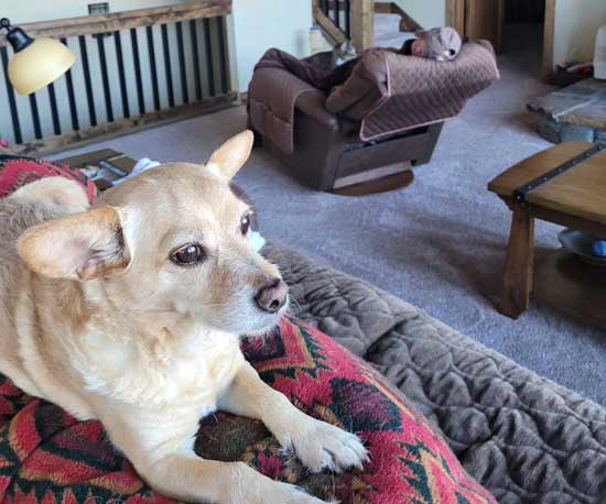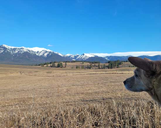 | Deep thoughts from Buddy as he admires a blue sky day. |