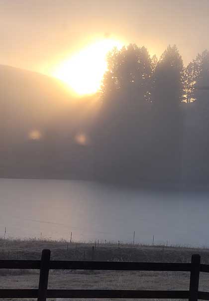 | On a more typical, overcast morning - the sunrise made a neat effect in the haze. |