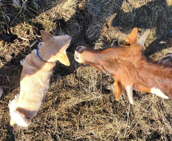 | I couldn't believe Buddy let her get this close! She wants to lick him SO bad. |