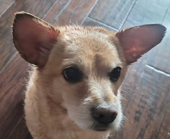 | It's all fun and games until somebody rolls in poop. Here he is fresh out of a bath. |
