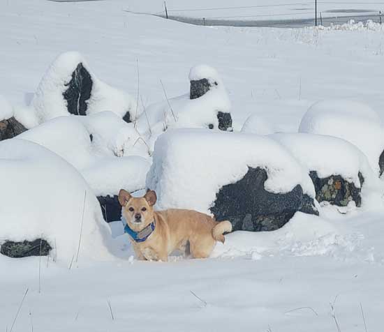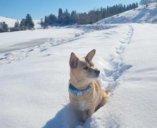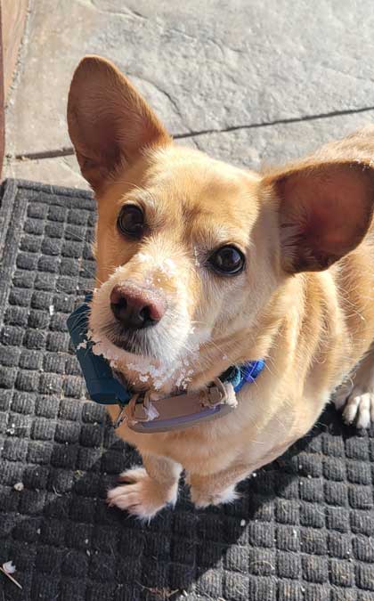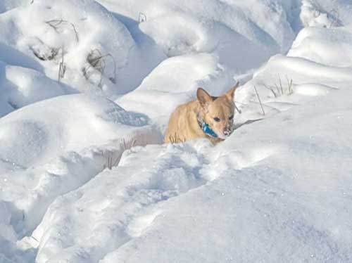 When Buddy is done with a snow walk, he races to the door and dances there impatiently until I eventually catch up to let him in. |