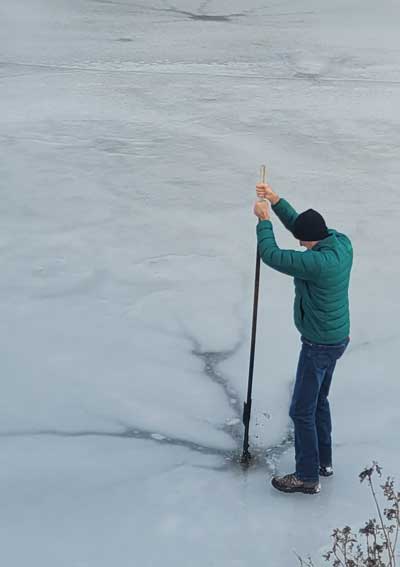 | Eric is back now. He's been waiting for just the right conditions to remove this fence post. |