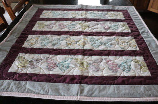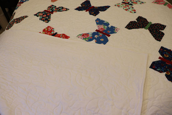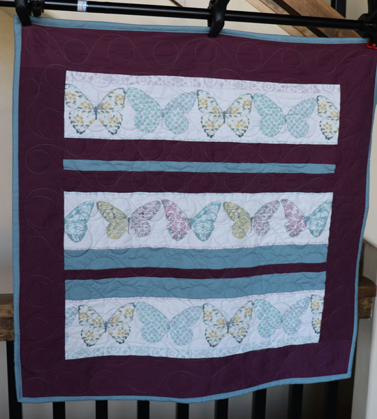 | I loved this butterfly fabric so I made another baby quilt out of it. | Fleece backing! |