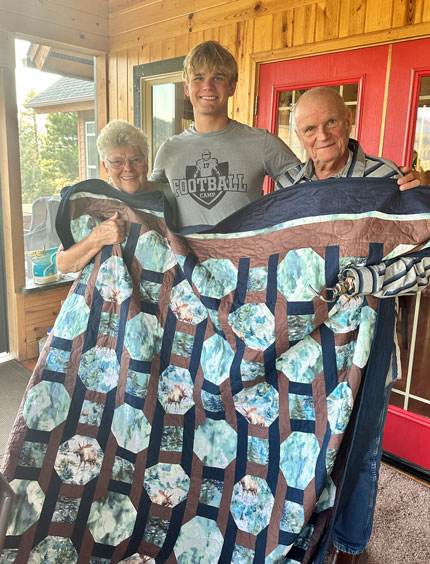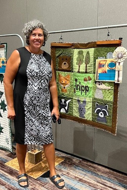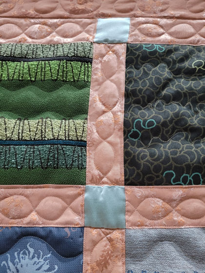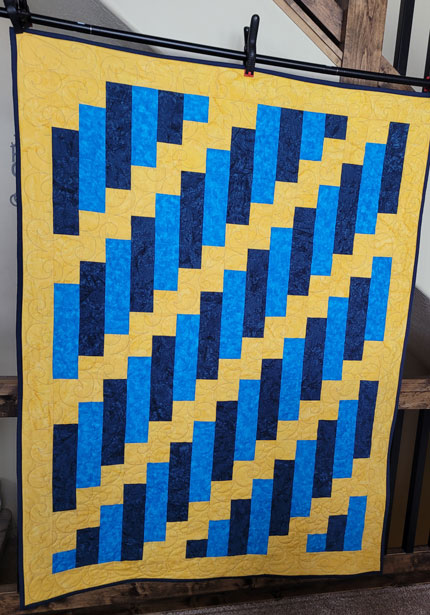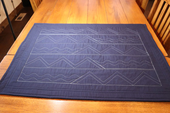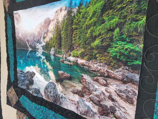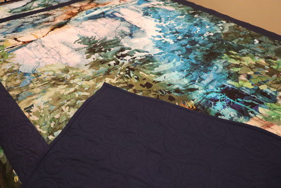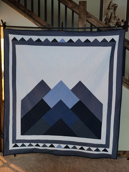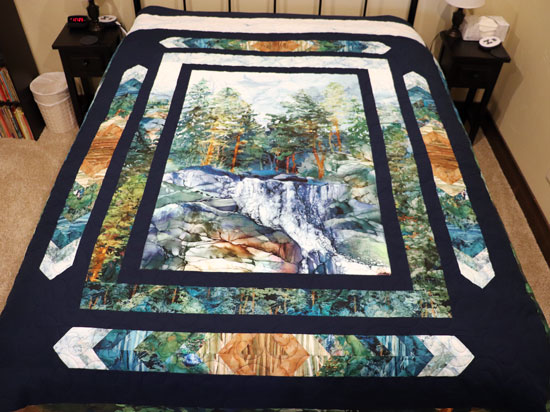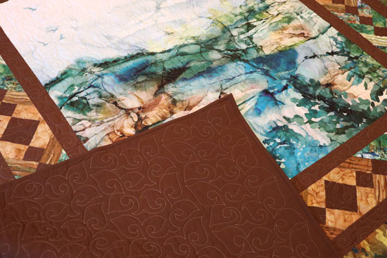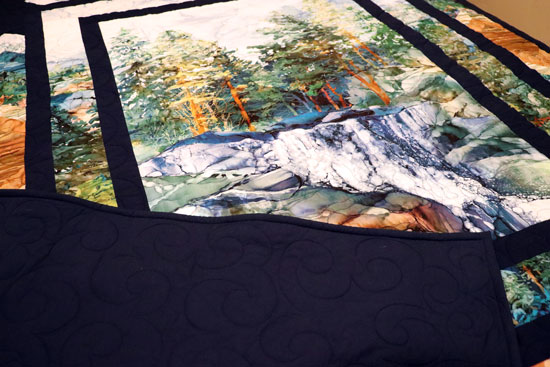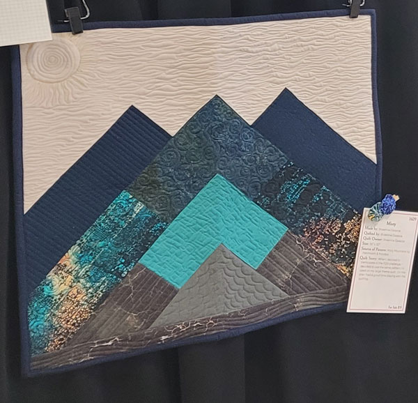 | The brown fabric looked like rocks and the blue looked like water. | It got a 3rd place ribbon in the Rendezvous Days 2025 quilt show. |