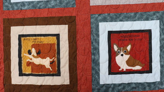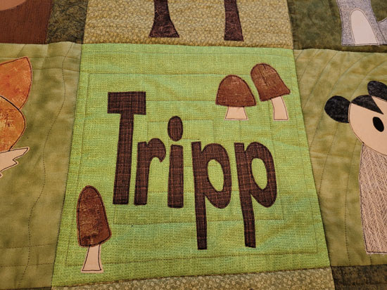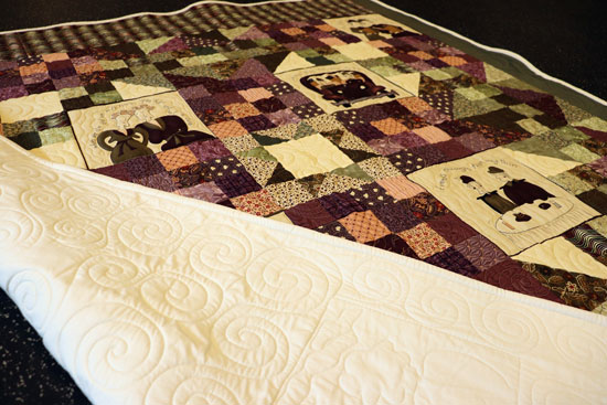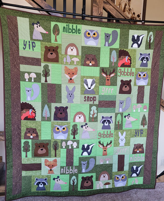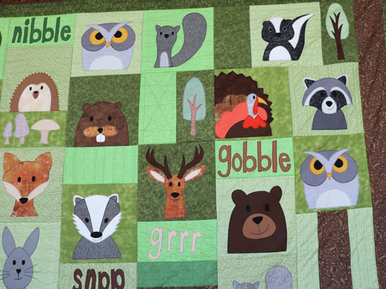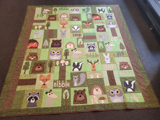 | It was done using Quilt as you Go methods. | The pattern is called Woodland Critters by Shiny Happy World. |