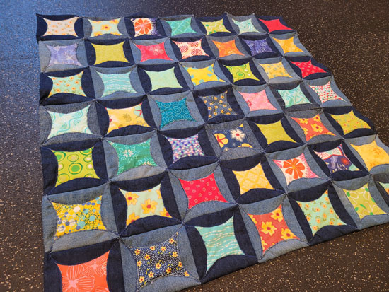 above, I accidentally made a whole bunch of units with the colors reversed. Rather than throw them away, I made up a new design and made a second donation quilt.