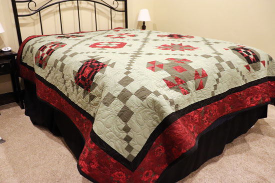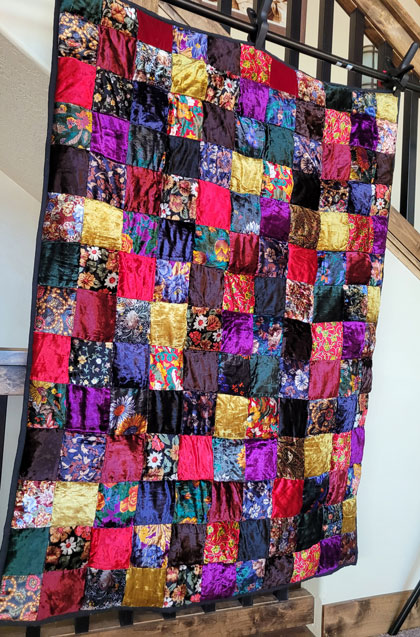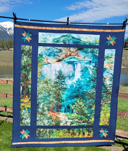 Eric and I made a date of a trip to the Bigfork Quilt Show one year. While there, I bought this quilt kit at the boutique. It sewed up so beautifully. The fabric was just gorgeous. |