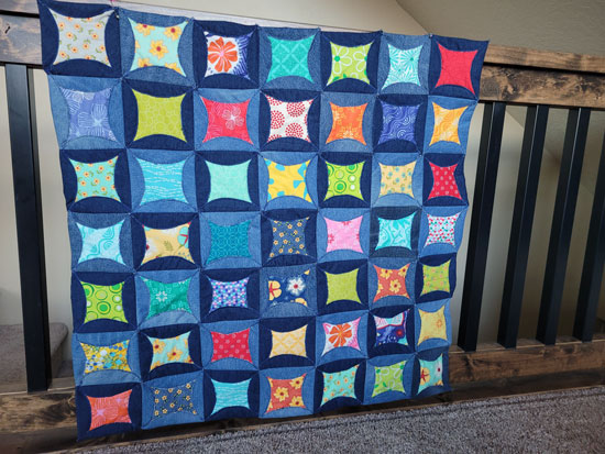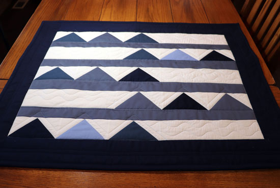 | When making the Modern Mountains large quilt earlier, I had these pieces leftover. | I decided to make something good out of them, and this quilt was born. |