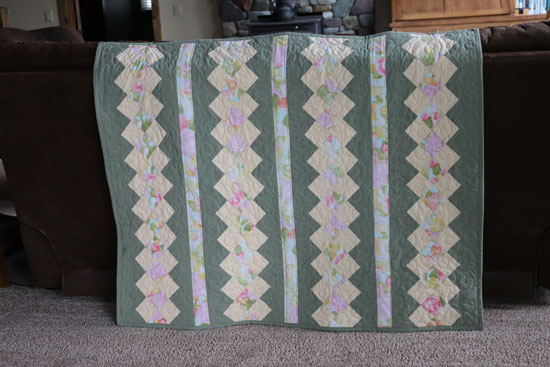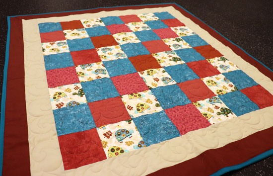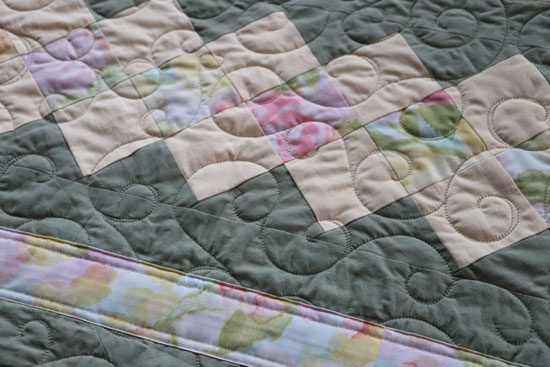 Coeur d'Alene Idaho, I found a bunch of partially completed quilt tops at a Goodwill store. This one only needed to be quilted and an adorable quilt was born. |