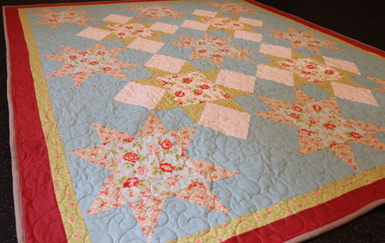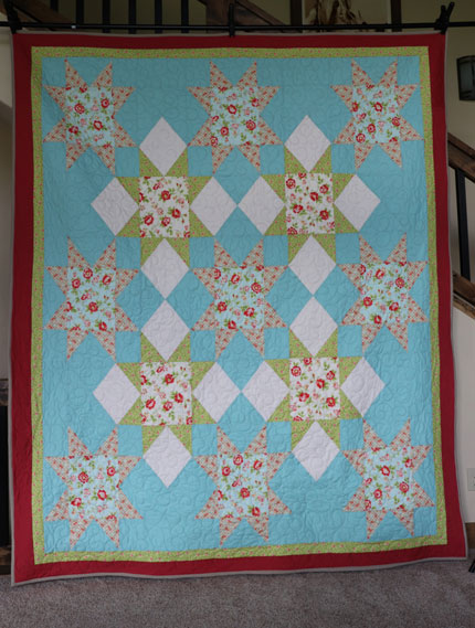 saw this beautiful star quilt top for sale. I really wanted to be the one who turned it into something useful so I bought it. It turned out to be difficult to quilt, it was made