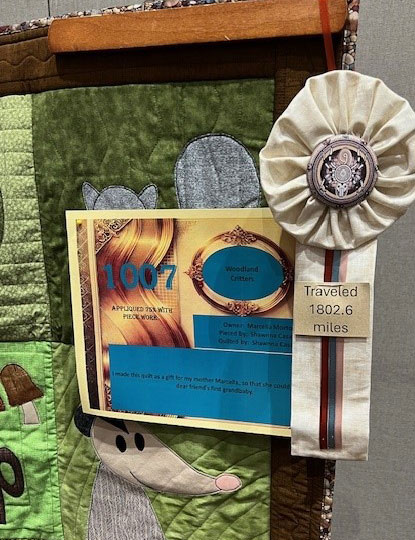 | It won a ribbon for being the "world traveler" - quilt from furthest away. | |