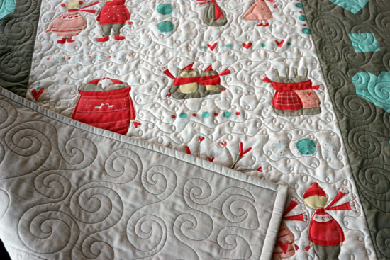 I did tight quilting in the background and light detail quilting on Millie.