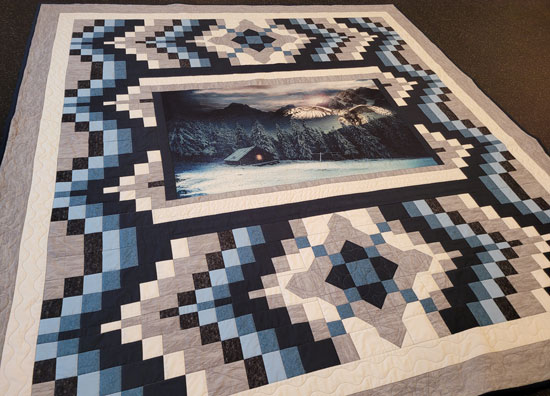 This was a fun panel that I whipped up and did a lot of detailed quilting the panel part.