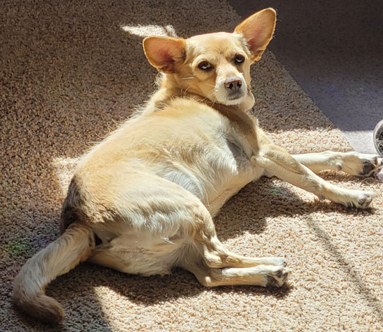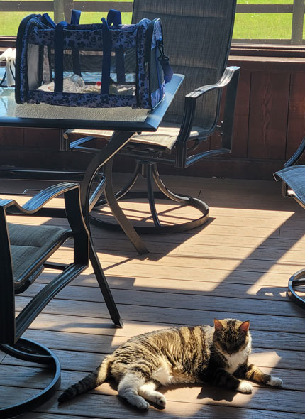 | Buddy loves to roast himself in the full afternoon sun on the front porch. | |