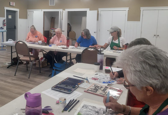 | Beautiful sunset one evening. | Scenes from a fun class in fabric painting at our local quilt guild. It was a great day. |