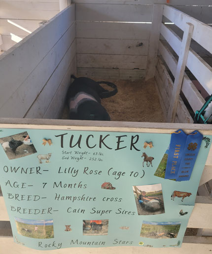 | Our great niece Lilly won first place for her pig Tucker. | |