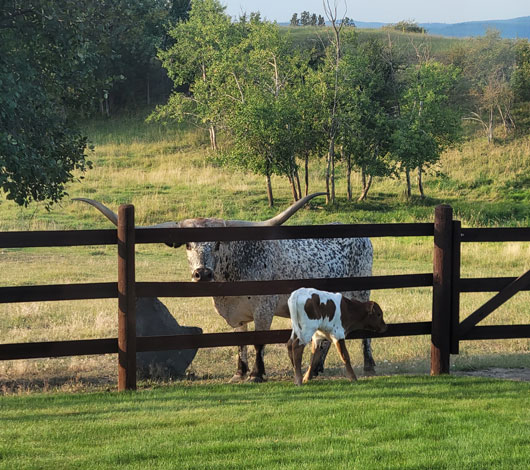 ![]() The newest longhorn baby. I call him Bikram because of the little dot on his forehead. His mamma is very protective. |