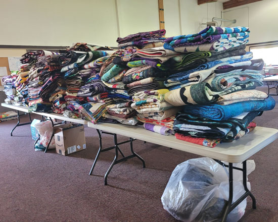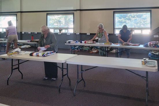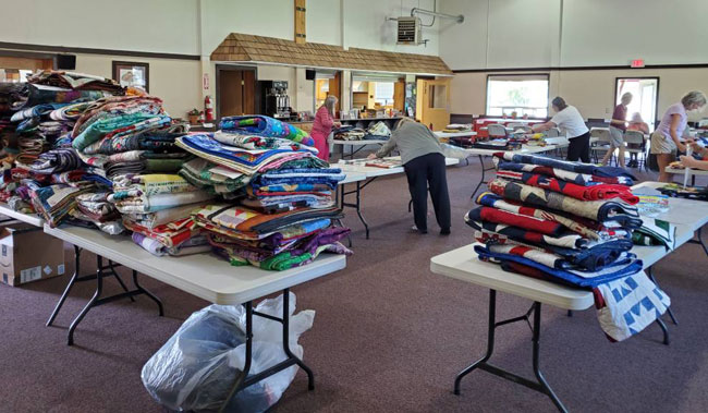 This wonderful team of ladies accepts, measures, labels, and sorts over 400 quilts in one day. It's amazing. |