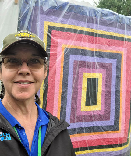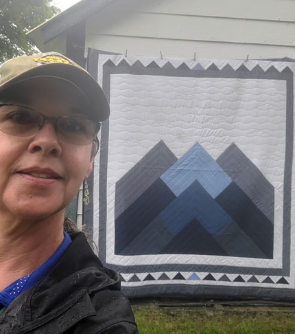 | Me with that quilt, after I rotated it to the correct orientation. | |