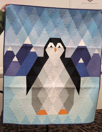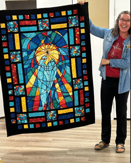| Me showing my quilt "Nativity" at the Eureka guild meeting. | |