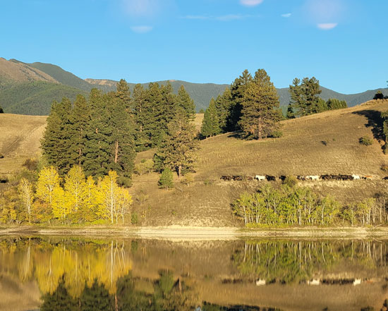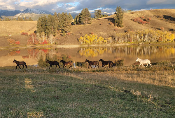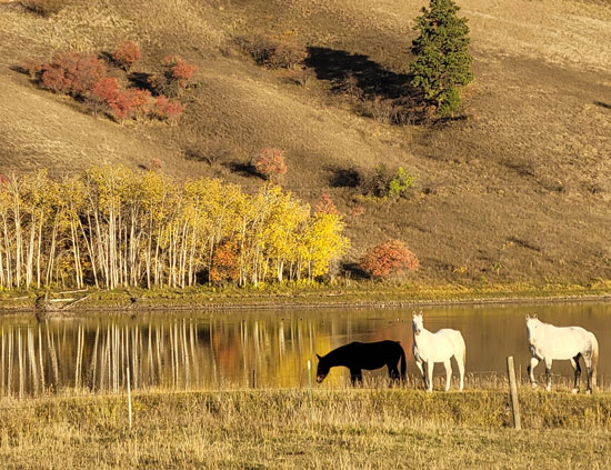| I accidentally took this beautiful picture - the sky is actually a reflection in the water. | The mules moving over to Dan's property one beautiful evening. |