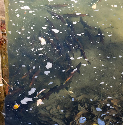 | And here they are, lounging on a hillside on another day. | There were SO many salmon trapped in the hillbilly hot tub this year! |