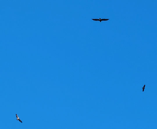 the area. I think we had at least 12 one day. Here are three of them that flew out of a tree when Buddy & I went too close. |