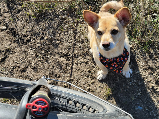 | The inlet with fall colors going on. | Had to stop in the middle of an e-Bike ride to take a picture of his cuteness. |