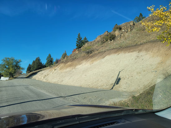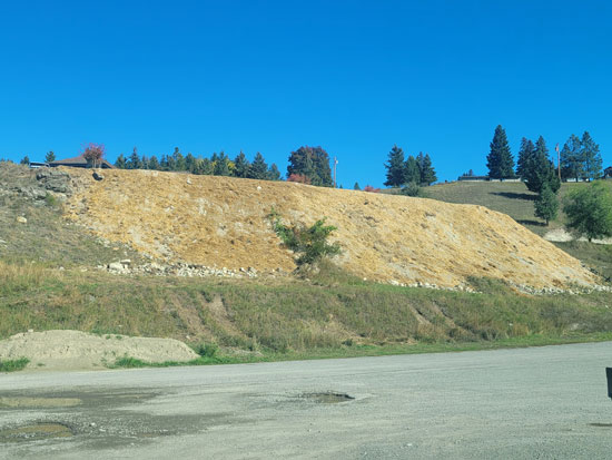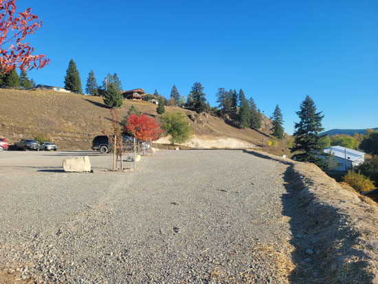 trees mark where the cliff used to end. This area later got signs and concrete parking stops added to it as well. |