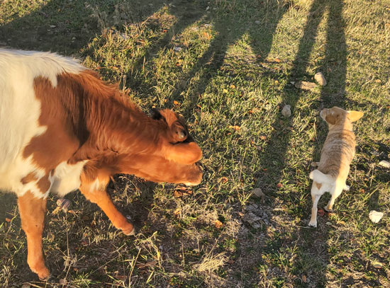 | If you stand still for a minute, Sweet Pea will be licking you. She is so cute. | These two are so curious about each other, yet so afraid at the same time. |