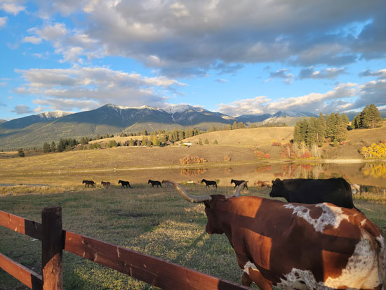 | The mules decided to run along the lake road which caused the longhorns to run too. | They sure are nice to look at. |