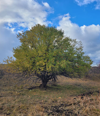 | This pretty apple tree is still covered in tasty apples but we're too lazy to do anything with them. |