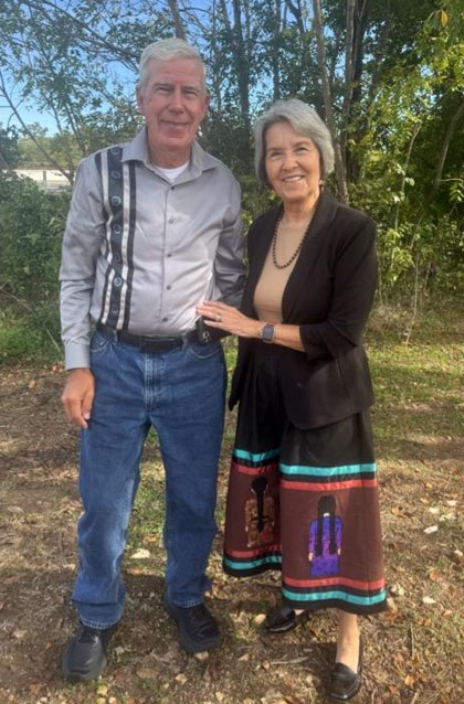 | Photos from home - Dad & Mom going to a Cherokee Nation event. They are wearing Native-style clothing designed and decorated by Mom. |