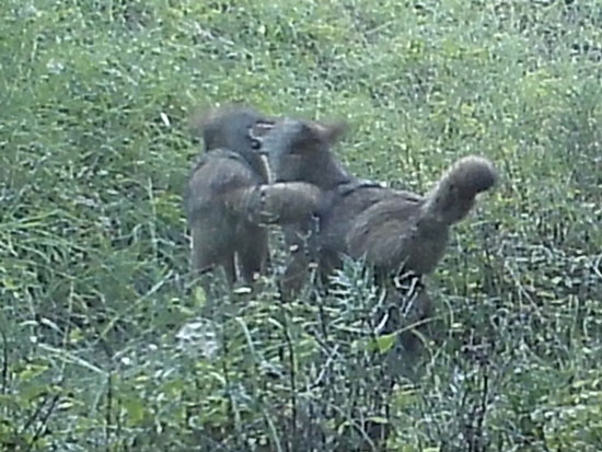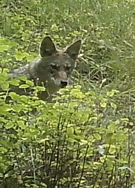 | Wild mountain beast, on the hunt. | Two coyotes playing. There was a third one off to the side. |