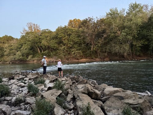 | A day late but moving fast, the boys finally get to start their week of fishing. Thankfully the weather was perfect - mid 80's. |