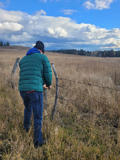 | The mules and horses were about to go into a new field, so we walked the fence line before that happened. |