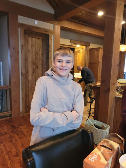 Blurry shot of Bryce, Logan, and Jeb in the kitchen. |