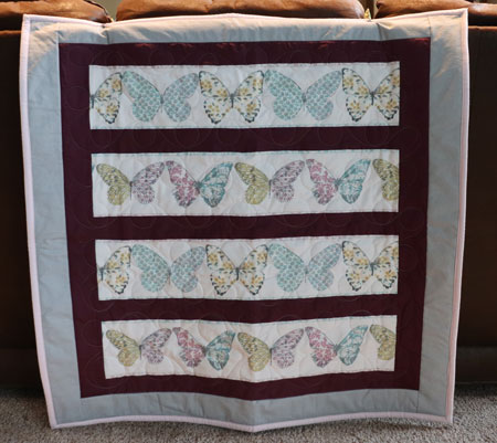 | I loved this butterfly fabric so I made another baby quilt out of it. | Fleece backing! |