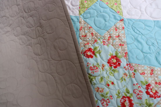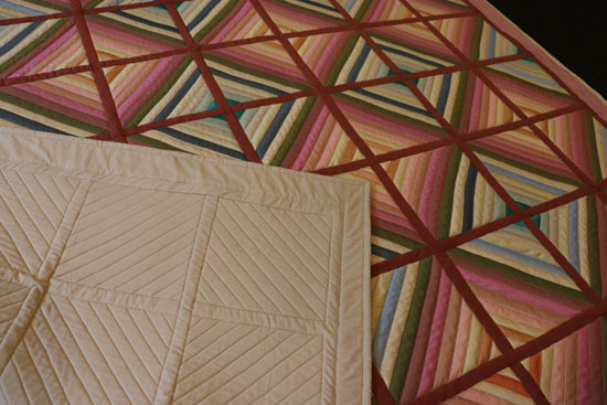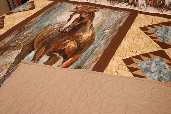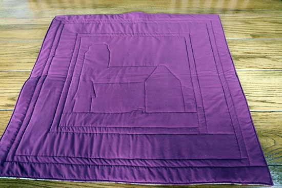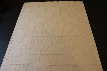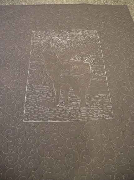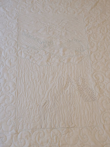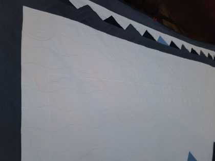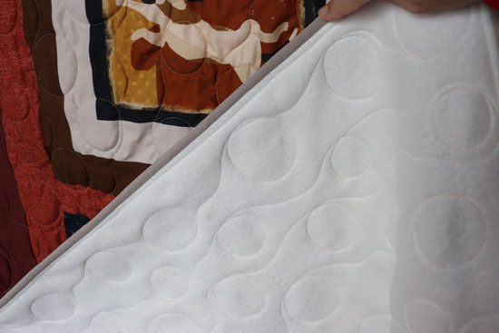 | Creamy tan backing. | I worked hard on the quilting, the rocks looked