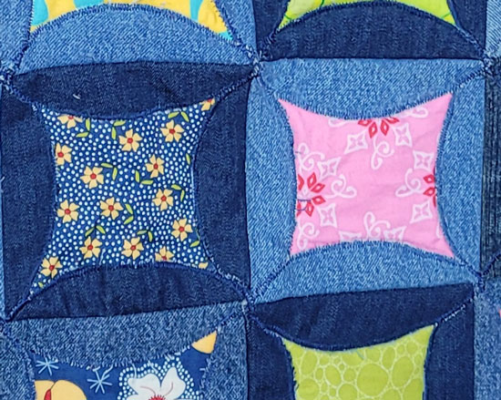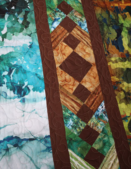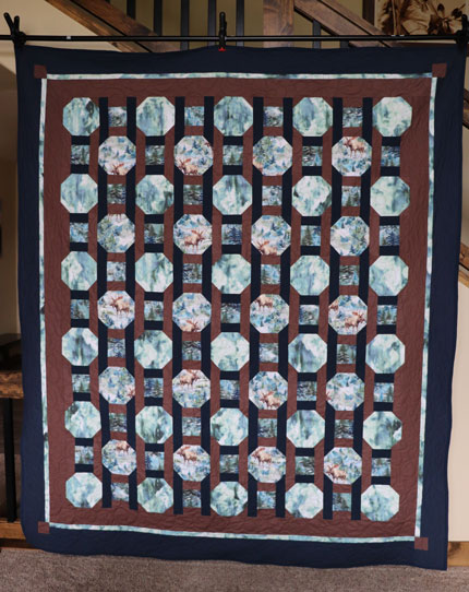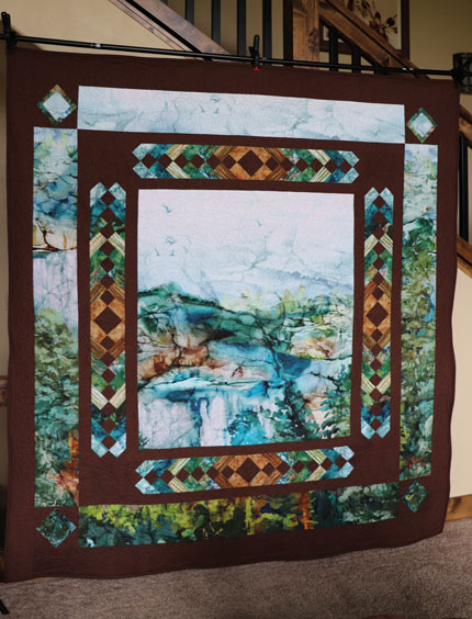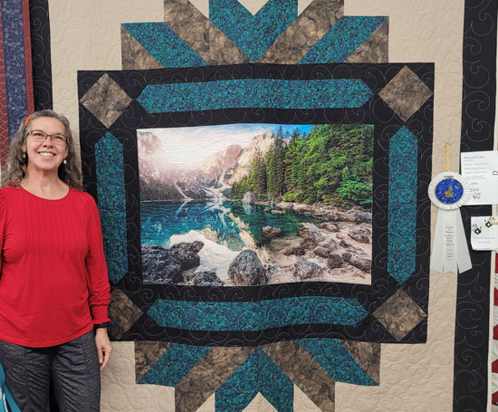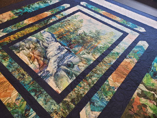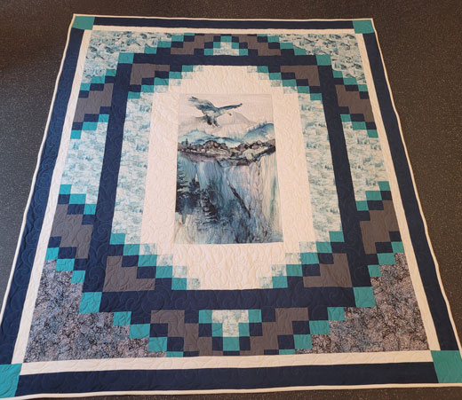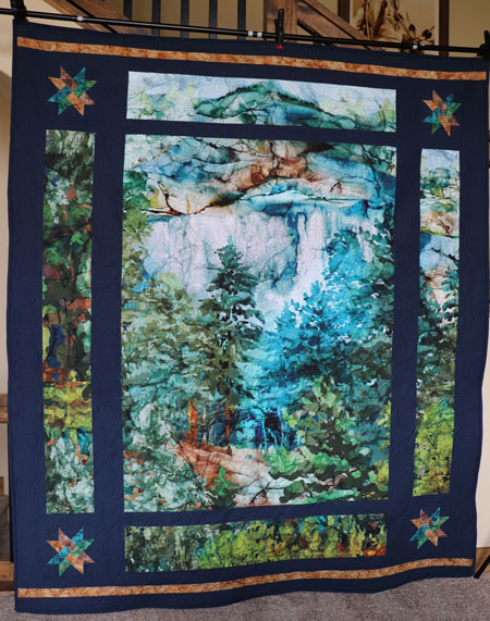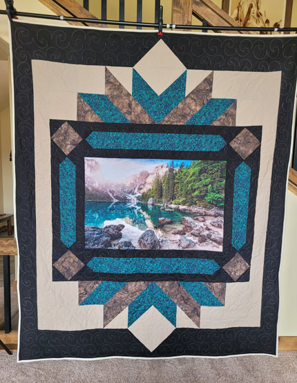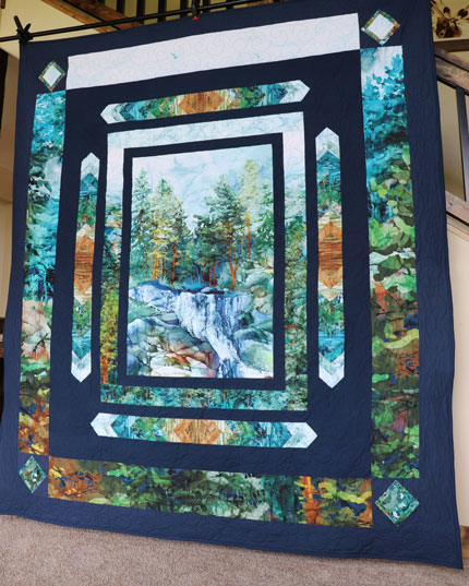 | The brown fabric looked like rocks and the blue looked like water. | It got a 3rd place ribbon in the Rendezvous Days 2025 quilt show. |