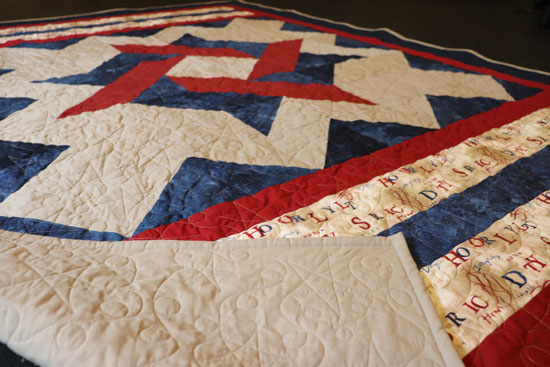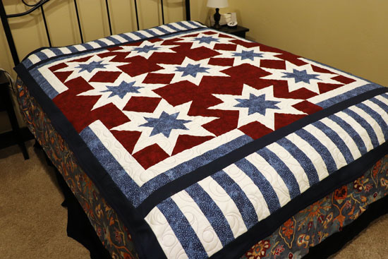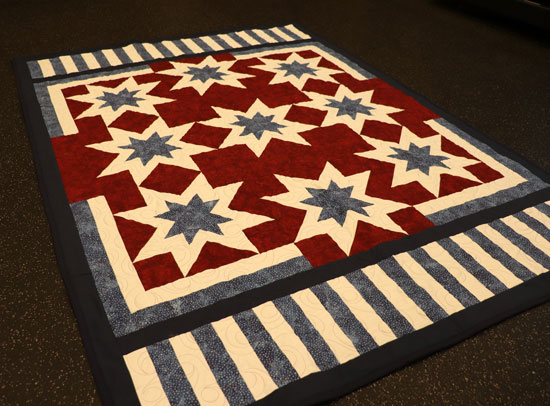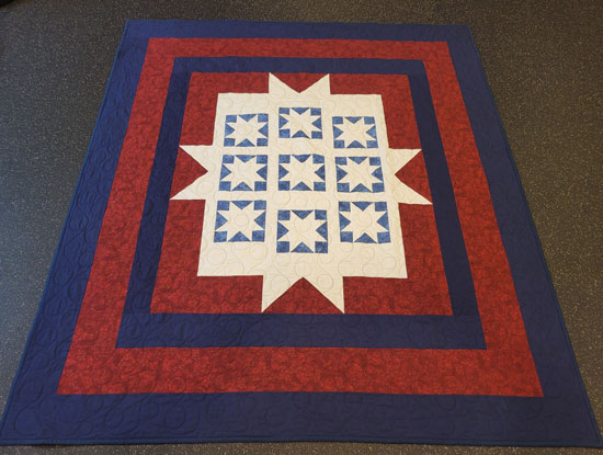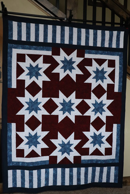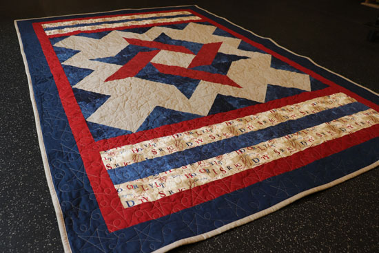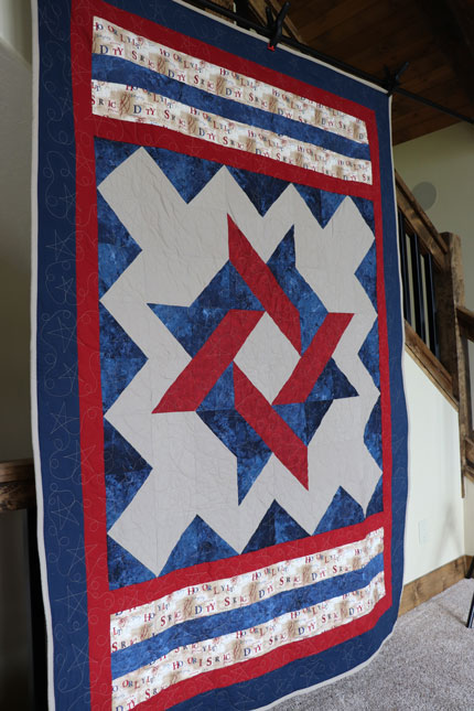 which displays patriotic quilts, then after the show they are donated to the PTSD ward of the nearest veteran hospital. I make at least one quilt for this worthy cause |