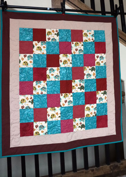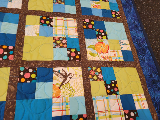 Coeur d'Alene Idaho, I found a bunch of partially completed quilt tops at a Goodwill store. This one only needed to be quilted and an adorable quilt was born. |