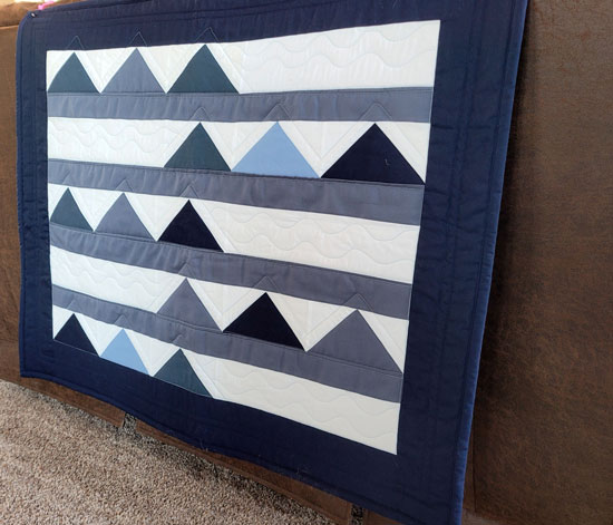 | When making the Modern Mountains large quilt earlier, I had these pieces leftover. | I decided to make something good out of them, and this quilt was born. |
